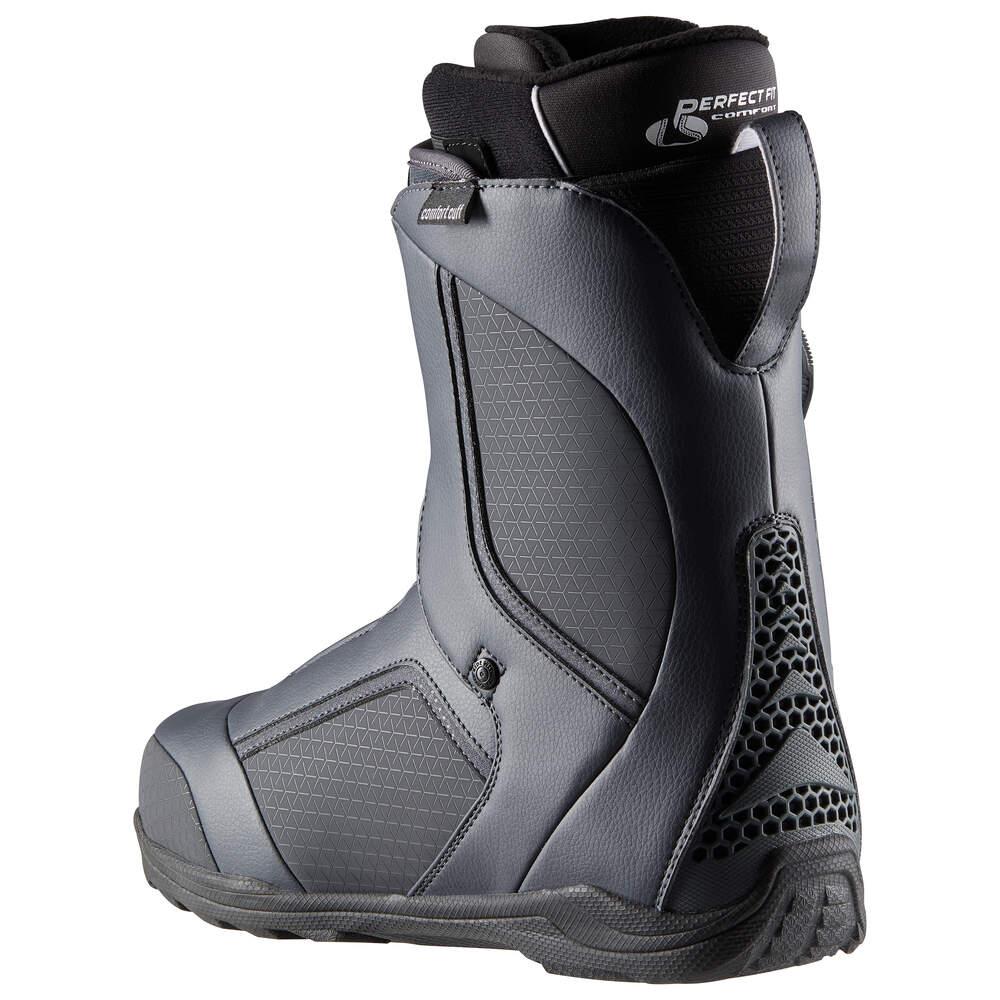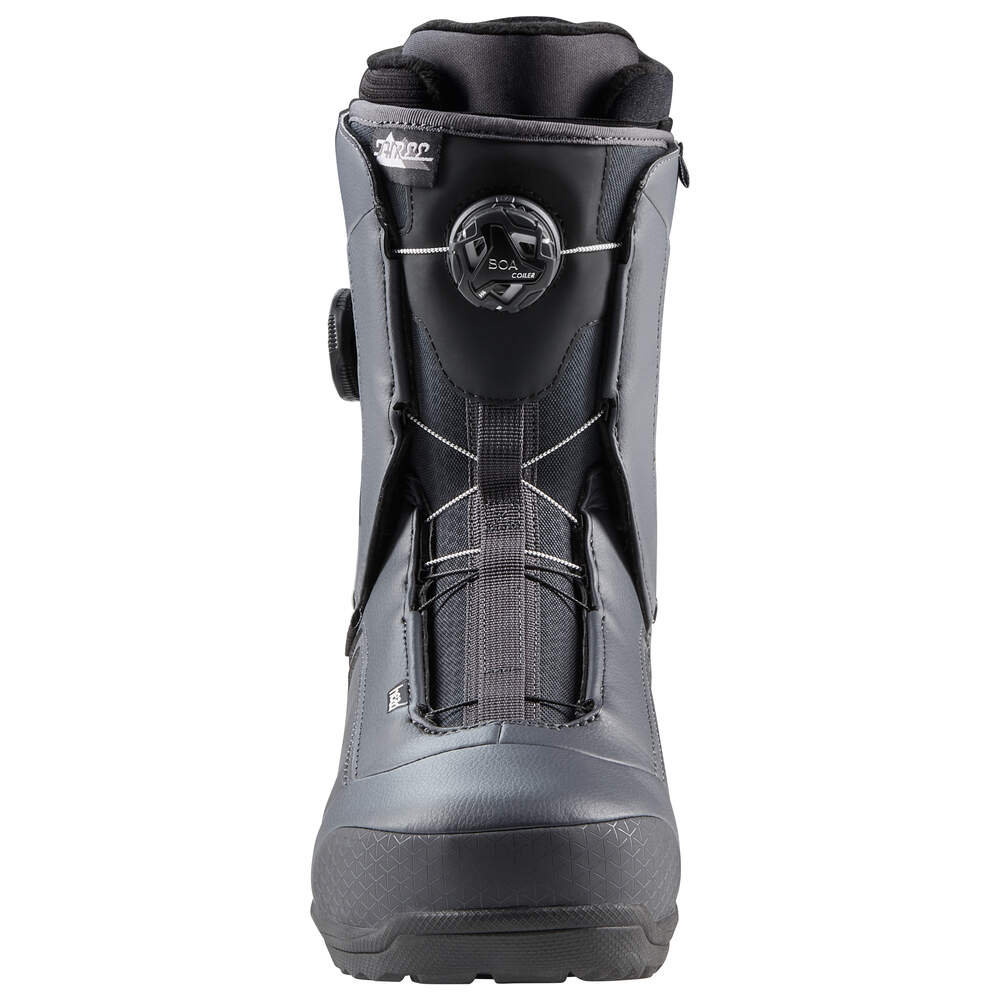 THREE LYT BOA FOCUS to wygodne buty gwarantujące łatwość jazdy. Wyróżnia je umiarkowany flex i łagodne pochylenie cholewki do przodu. But wewnętrzny Perfect Fit oferuje imponujące możliwości adaptacyjne i zapobiega punktom ucisku. Dwa systemy BOA® tworzą niezależnie regulowane strefy, co przekłada się na indywidualne dopasowanie o zróżnicowanym docisku w okolicy śródstopia i cholewki. Konstrukcja Cuff Cut gwarantuje komfort i precyzyjne przyleganie przy kompaktowej formie, a superlekkie podeszwy Treadlyt zapewniają świetną przyczepność.