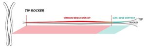 Tip Rocker czyli podgięcie przodów nart jest to innowacyjna i sprawdzona technologia. Stosowana zazwyczaj w nartach z grupy allmountain, a czasem nawet w grupie “race’, dodając im więcej uniwersalności. Dzięki niej długość krawędzi kontaktowej jest dłuższa podczas skrętu, zwiększając przy tym stabilność nart. Jest to w szczególności odczuwalne przy większej szybkości oraz oblodzonych trasach. Tip Rocker ułatwia również inicjację skrętu, dlatego takie narty idealnie nadają się szlifowania techniki jazdy czy też samej nauki jazdy.